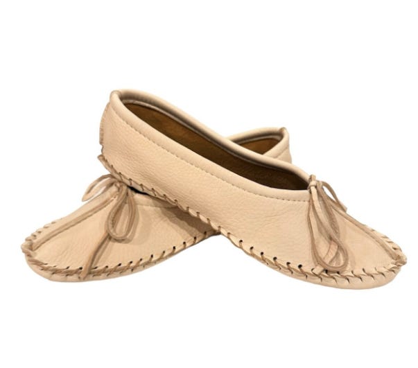 I am pretty sure they are these ones from Hides in Hand which is located in Rockwood, Ontario. While they are not Indigenous-made, they are from a company that learned the skill of moccasin-making from an Elder and today work together in collaboration with Indigenous artists. :)
